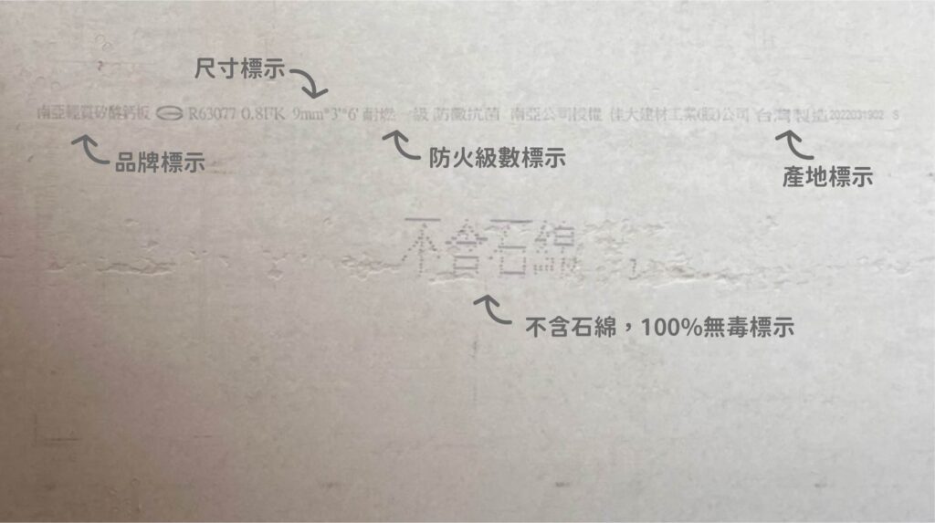 一般板材背面也都會標上品牌、產地、與認證標章可以做雙重確認。