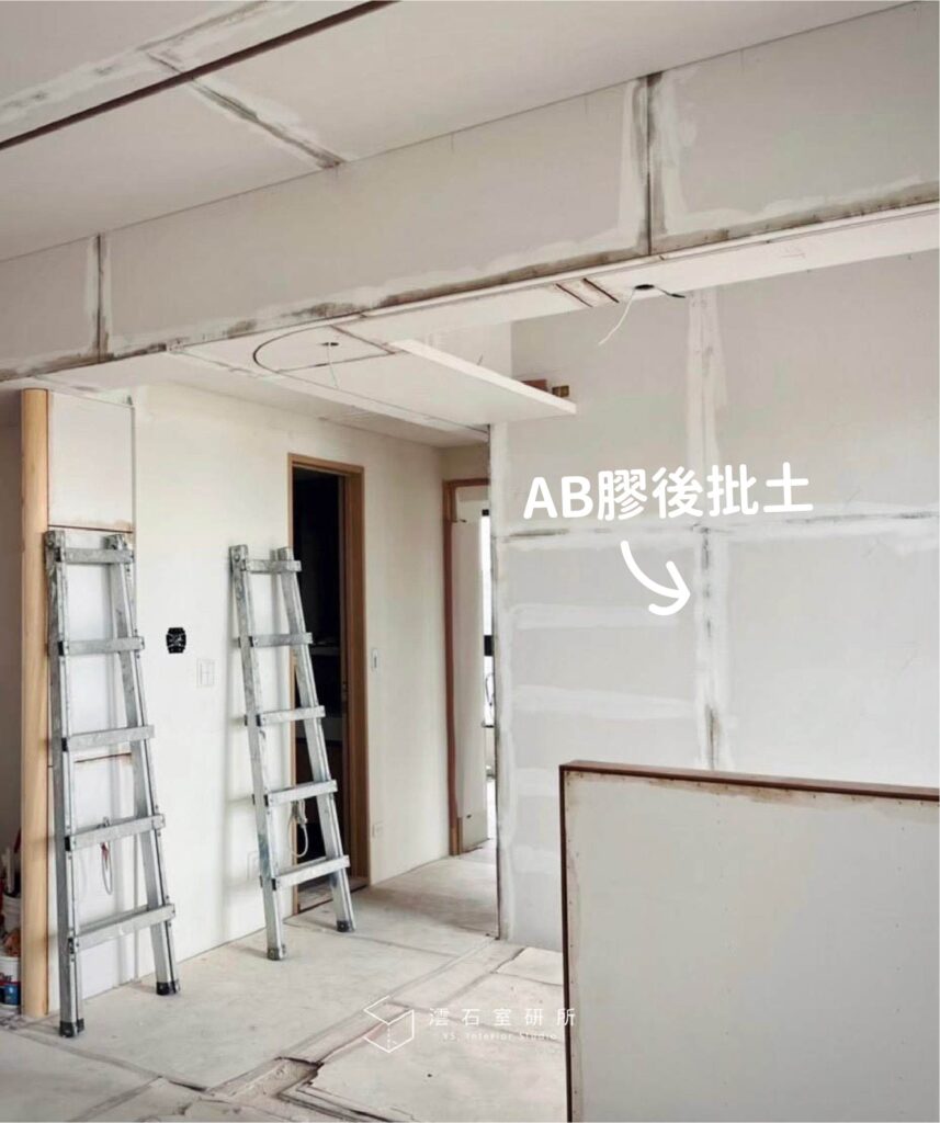 另外,矽酸鈣板還有熱漲冷縮的特性,所以接合處都會預留一些伸縮縫,並使用AB膠填縫再批土 2 – 3 次後上漆,