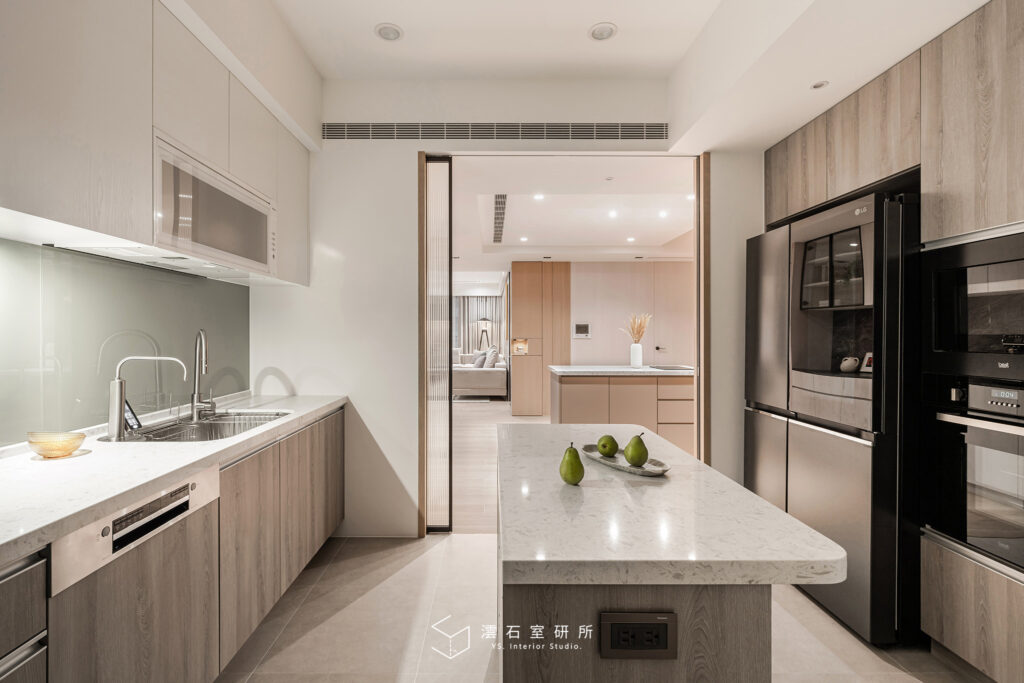 【 公共區域/ 餐廚區】屋主是位熱愛烘焙與料理的美食達人,對於廚房的設計與廚具的挑選非常講究。規劃上不僅重視實用性,更注重每個空間的運用性及是否就手好使用,在料理過程中能夠更加順手和高效。屋主精心挑選的高品質廚具,不僅具備了堅固耐用的特性,還兼具美觀與設計感,讓每一次的烹飪和烘焙都成為一種享受。在這個廚房中,屋主能夠輕鬆發揮烘焙技巧,創作出一道道美味,完美融合了實用與藝術的空間。